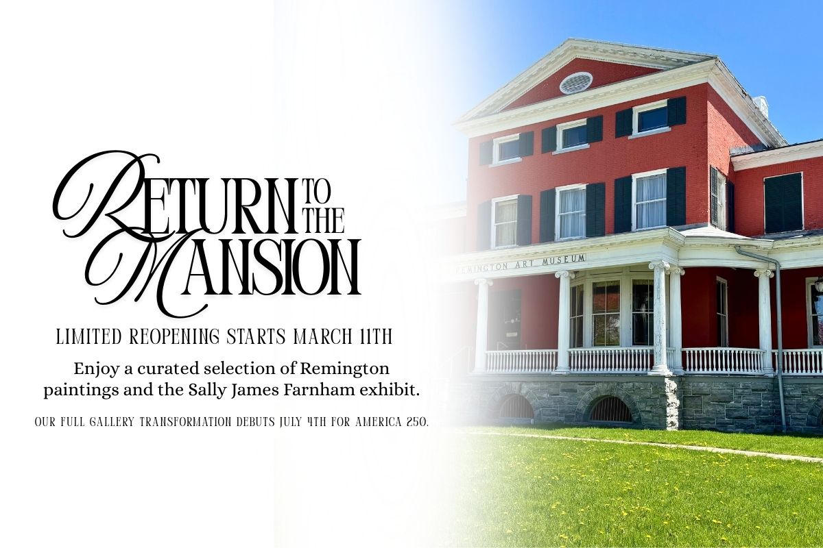 Join us as we reopen the Parish Mansion to the public with a curated selection of Remington artworks on display, as well as the Sally James Farnham exhibit and our new Kid's Corner.