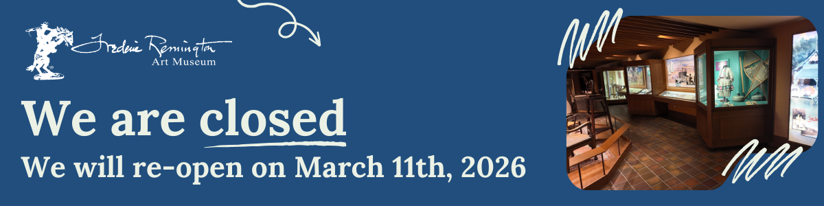 The Frederic Remington Art Museum is a self-guided tour museum. We suggest giving yourself at least one hour to go through the Museum. Private tours are available upon request. Learn more about our tour options: Bus Tours, Group Tours, Private Tours, School Tours. Entrance to Kid's Place (Eva Caten Remington Education Center) is included in Museum admission! To learn more about Kid's Place, and check hours of operation, follow this link.