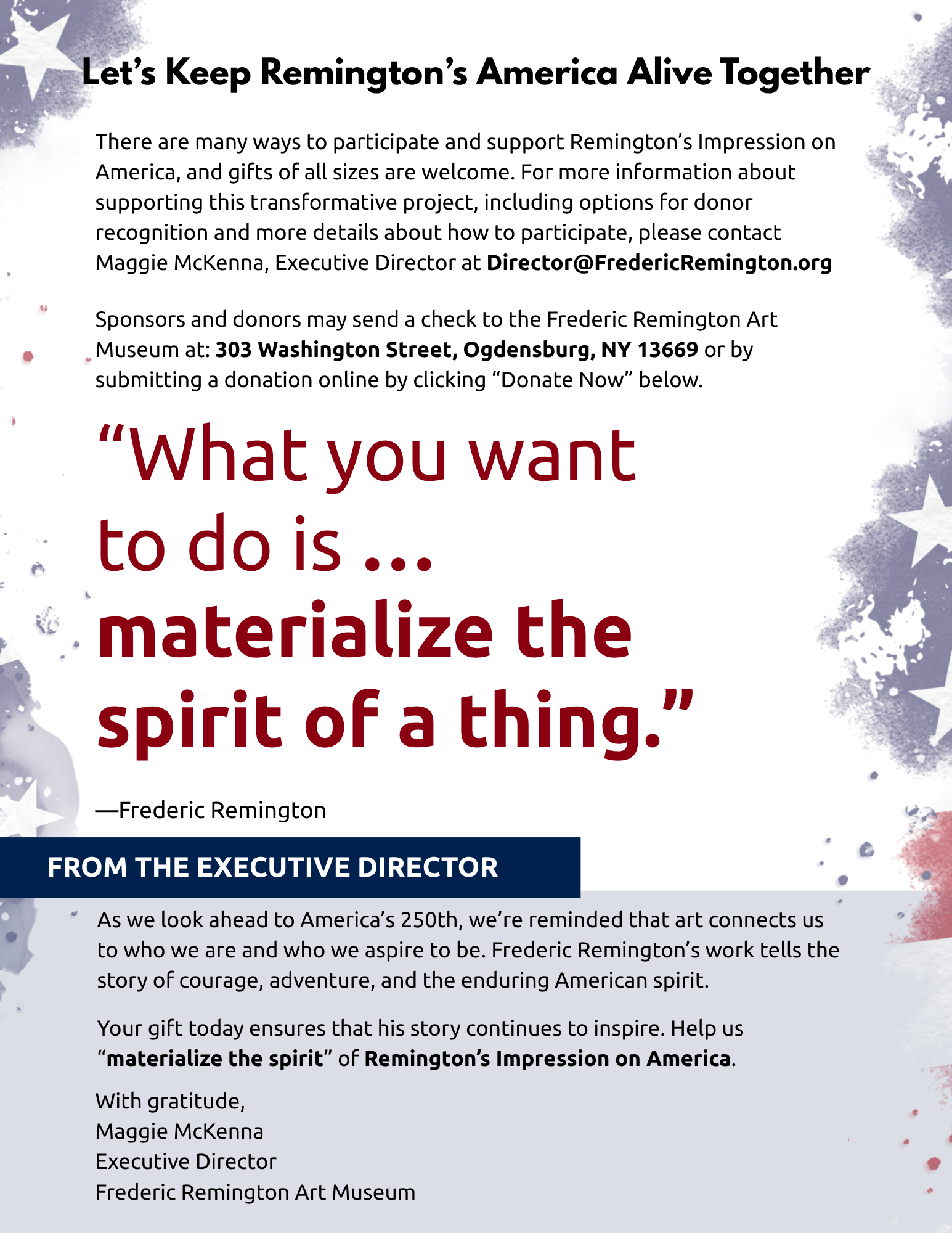 Support the Frederic Remington Art Museum’s America 250 exhibition and celebration.